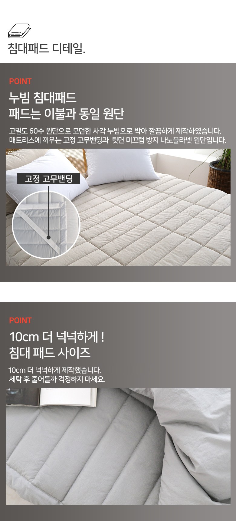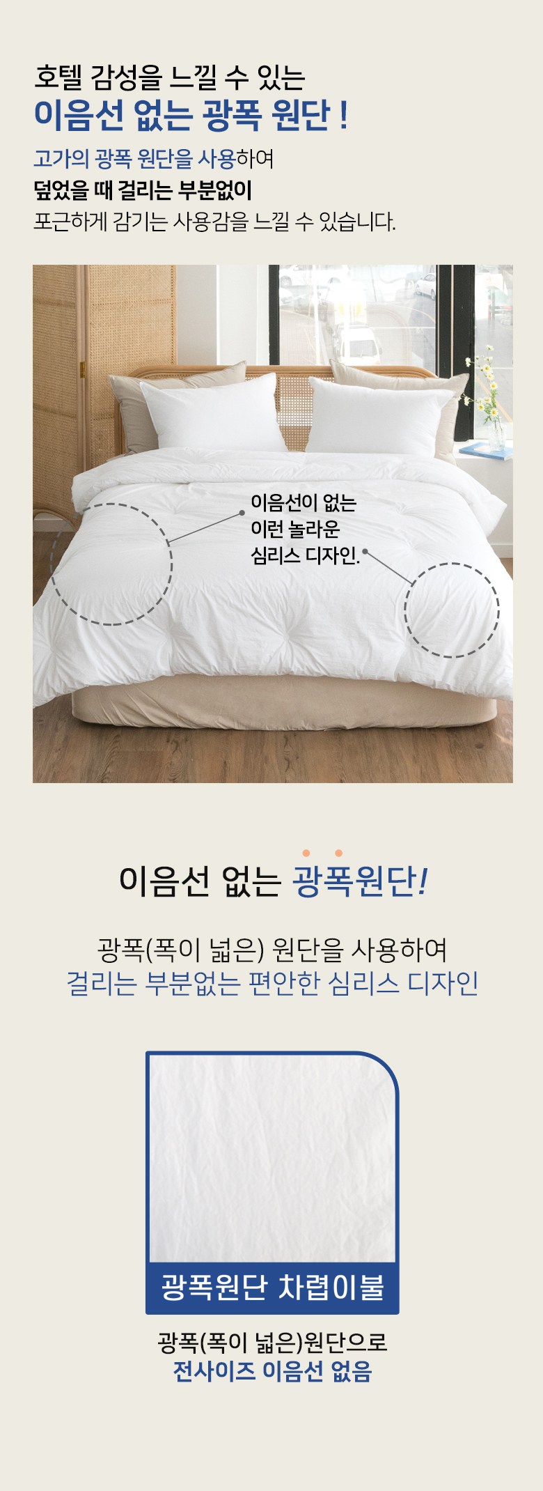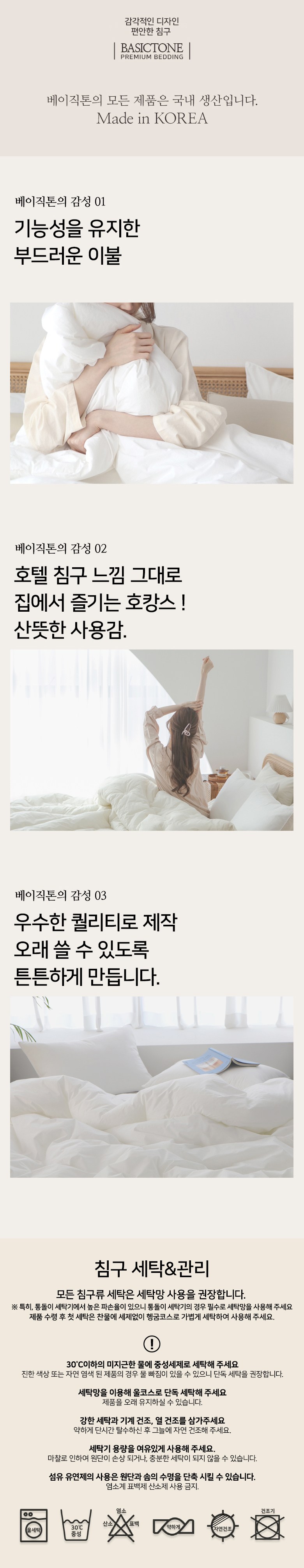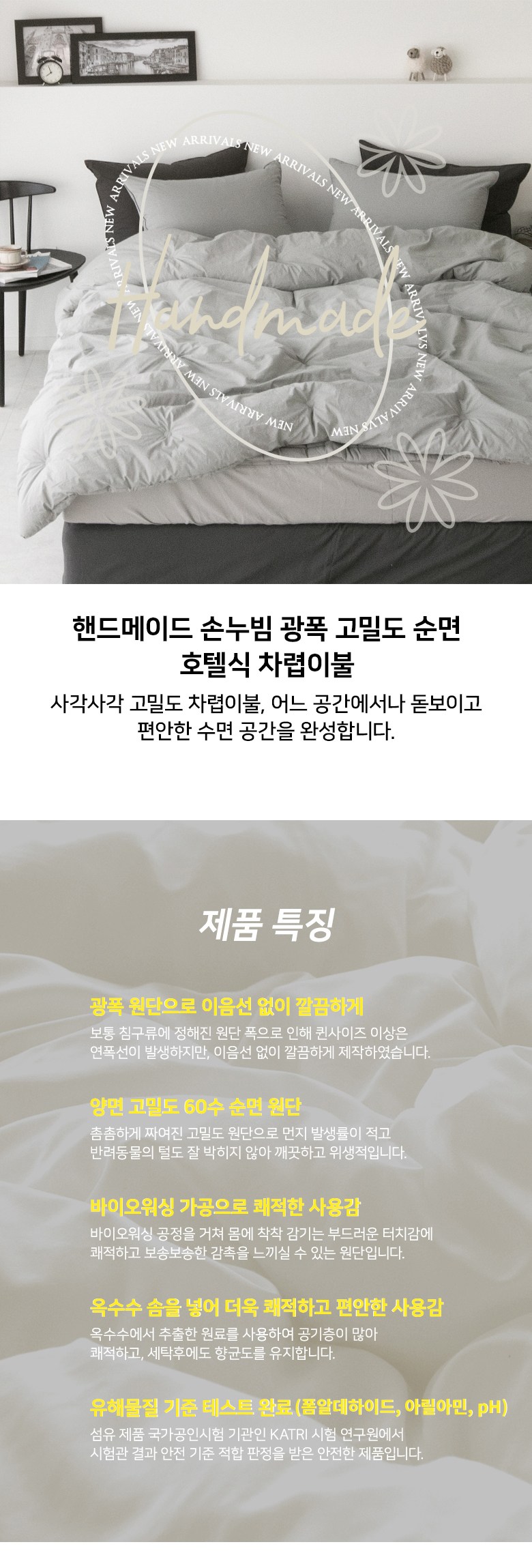 베이직톤 국내산 핸드메이드 손누빔 광폭 고밀도 순면 호텔식 차렵이불 세트 > 가구/홈