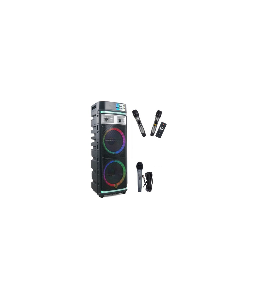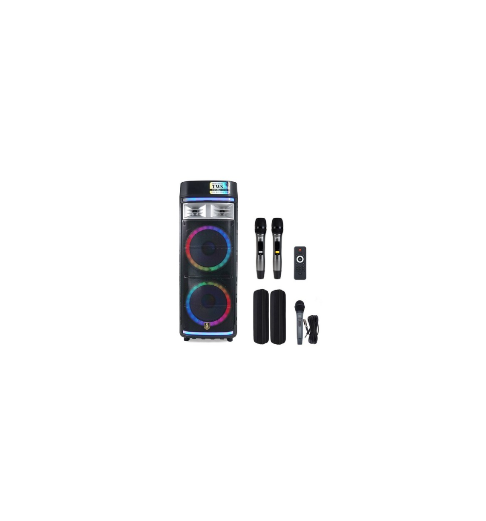 컴스 TWS LED 파티박스 스피커 이동식 UHF 블루투스 버스킹 노래방 앰프