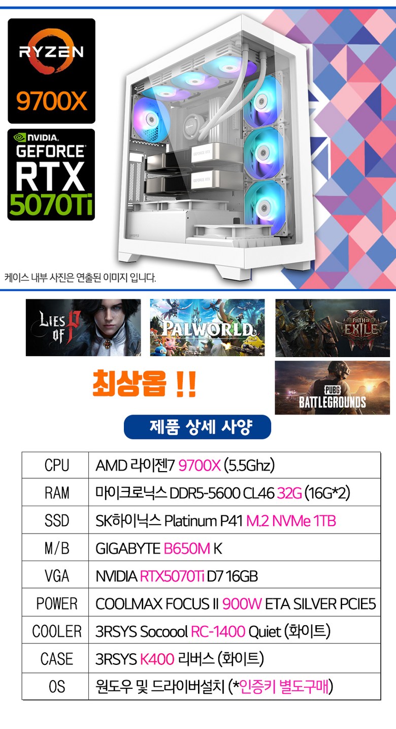 RTX5070Ti AMD9700X 조립PC 화이트 게이밍 컴퓨터 > 컴퓨터