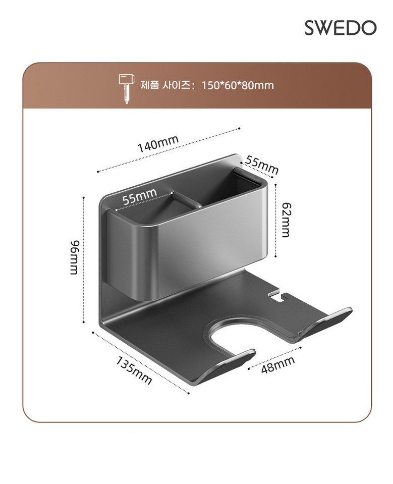 무타공 수납형 강력접착 드라이기 거치대 > 가구
