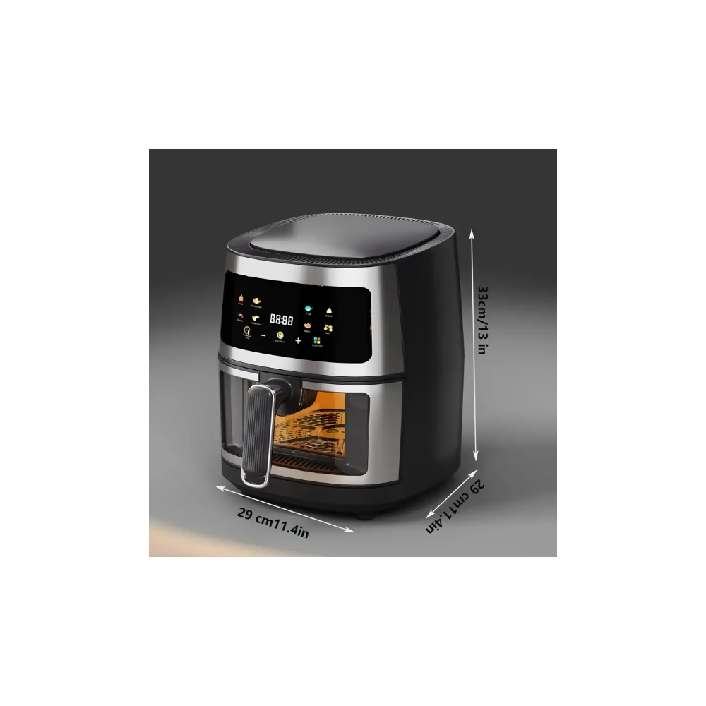 1개 6L 에어프라이어 - 투명 뷰 창 & 프로그램 기능, 크리스피 라이트 베이지 기술, 브로일, 로스트, 탈수, 베이크, 리히트 기능 - 세련된 블랙 컴팩트 디자인, 다용도 주방 가전, 디지털 컨트롤 패널, 내구성 있는 주방 도구 > 가전