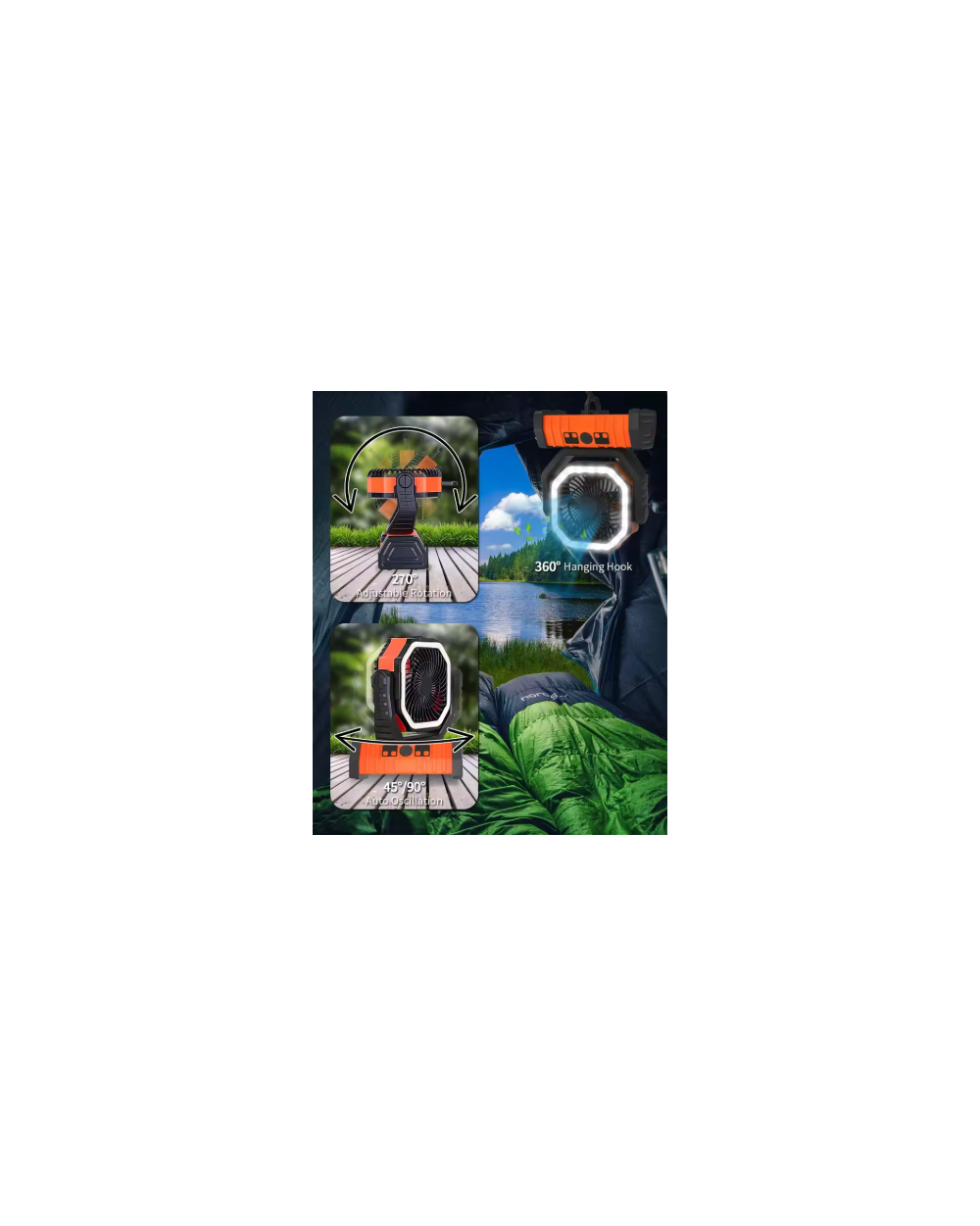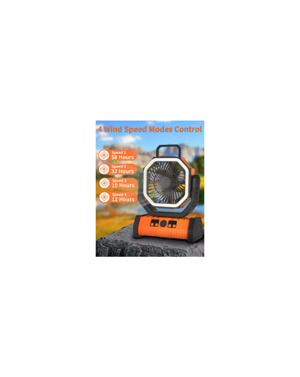 휴대용 캠핑 팬 충전식 배터리 작동 팬 조명 야외 해변 텐트 팬 4 속도 조절 밝기 > 가전