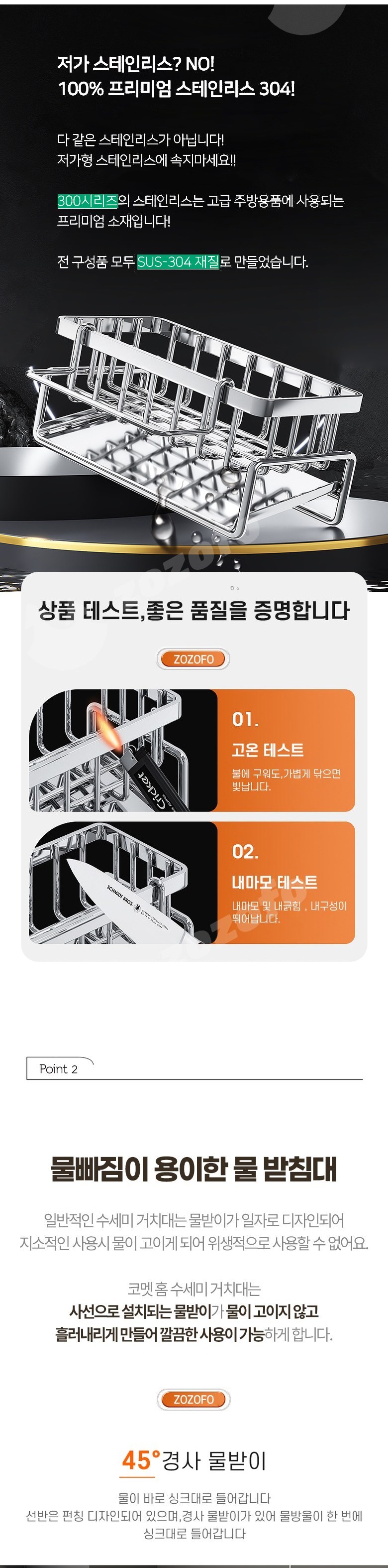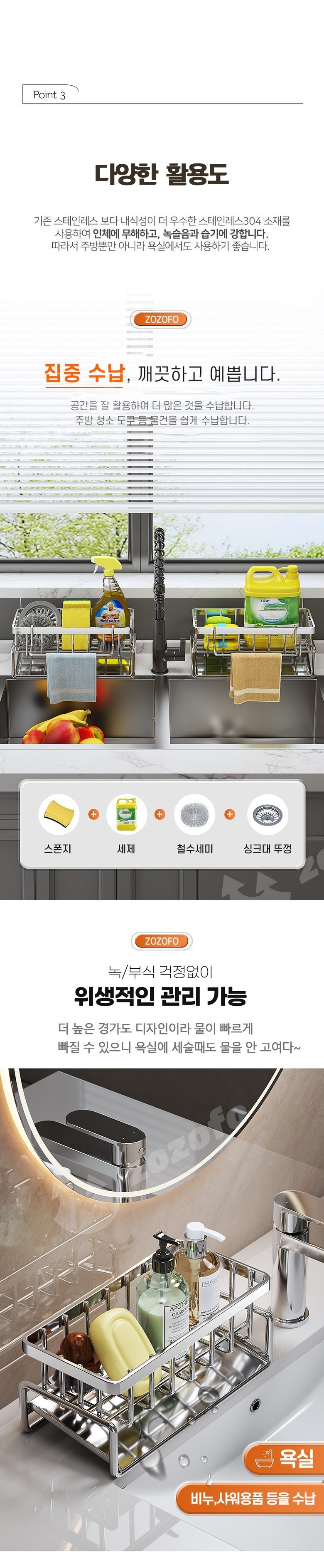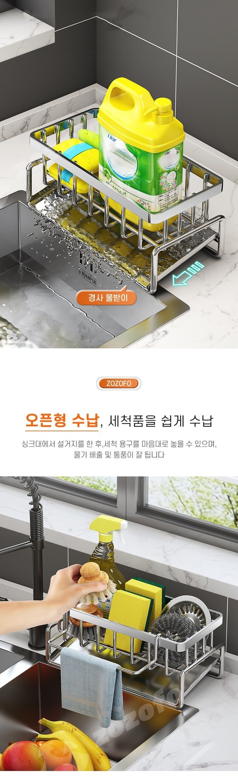 올스텐 304 자동물빠짐 수세미건조대